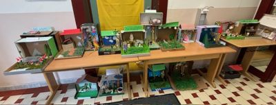 Der Fantasie und Kreativität waren dabei keine Grenzen gesetzt. Alle haben motiviert gebastelt, geklebt sowie gemalt, um ihr Märchen vor allen Kindern in der Schule zu präsentieren und ausstellen zu können.