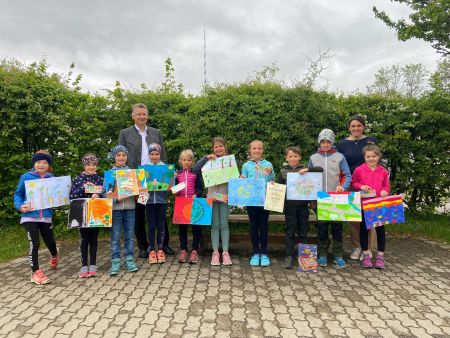 Auch heuer nahm Herr Weiland die Siegerehrung zum diesjährigen Malwettbewerb am 07. Mai vor. Wie immer begrüßte er alle Anwesenden sehr freundlich und stellte vorab klar: "In Wall gibt es viele kleine-große Künstler/-innen!". In jeder Klassenstufe gab es einen Klassensieger. Außerdem machten zwei weitere Schüler aus Wall einen zweiten und einen dritten Platz landkreisweit klar. Das bedeutete tolle Geschenküberraschungen. Aber keine Angst, niemand ging leer aus. Für die anderen kreativen Bilder zum Thema "Der Erde eine Zukunft geben" gab es als Belohnung einen "Stift mit Radiergummi". Wir möchten uns an dieser Stelle herzlich bei Frau Stürzer für ihren Einsatz bedanken. Sie ist es, die alle SchülerInnen beim Erstellen der Bilder unterstützt. Ein herzliches Dankeschön gilt auch Herrn Weiland mit seinem Team und allen, die erneut einen tollen Malwettbewerb 2024 organisiert, durchgeführt und ausgewertet haben!