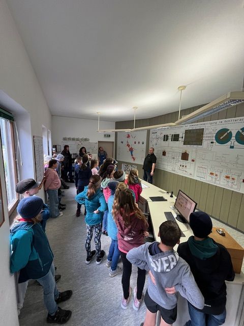 Am Montag, den 29.4.24 war es endlich wieder soweit. Die beiden 3/4-Klassen unserer Grundschule machten sich auf den Weg zu einem ganz besonderen Unterrichtsgang. Nachdem die Kinder in den vorherigen Wochen im Heimat- und Sachunterricht einiges zum Thema Wasserkreislauf und Wasserversorgung gelernt haben, galt es fortan zu überlegen, was mit dem verbrauchten Abwasser geschieht. Und was eignet sich hierfür am besten? Richtig – ein Besuch in der Kläranlage Miesbach. Nach einem kurzen Erklärvideo, zeigte Herr Sellak den Kontrollraum und somit die Steuerung der einzelnen Reinigungsstufen in der hochkomplexen Anlage. Dass diese einen erheblichen Beitrag zum Umweltschutz leistet, davon konnten sich alle einen Eindruck beim Rundgang verschaffen. Neben der mechanischen Reinigung mit Sand- und Fettfang, bestaunten die sichtbar beindruckten Dritt- und ViertklässlerInnen zudem die biologische und chemische Reinigungsstufe. Das Highlight folgte zum Schluss, als uns ein weiterer Mitarbeiter 'Korbi' die flinken Bakterien unter dem Mikroskop zeigte. Was für ein lehrreicher und abwechslungsreicher Schulvormittag! Ein herzliches Dankeschön gilt dem ganzen Team der Kläranlage Miesbach und vor allem Herrn Sellak für die tolle Vorbereitung und Durchführung unseres Besuches! Bis zum nächsten Mal!