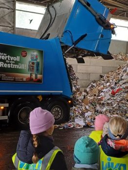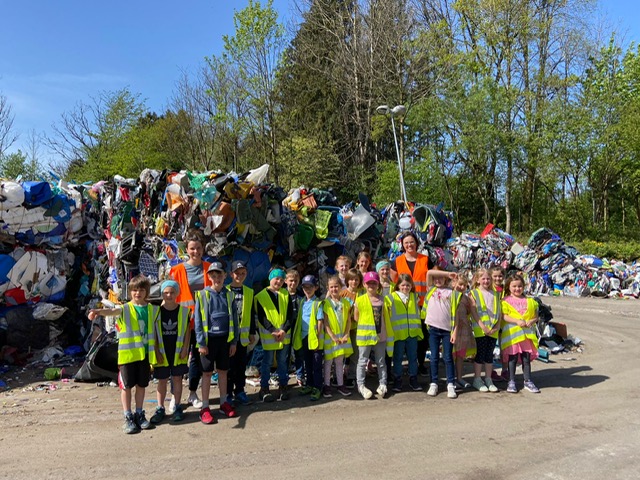 An zwei aufeinanderfolgenden Dienstagen fuhren die Klasse 1/2a und Klasse 1/2b zum Wertstoffhof nach Warngau. Obwohl die Kinder im Unterricht schon viel über Müllvermeidung und Wiederverwertung gehört hatten, gab es beim Besuch der VIVO eine Menge Neues zu lernen. Frau Nüßlein erklärte uns in einer anschaulichen Schulführung durch das VIVO Gelände die verschiedenen Arten der Abfallentsorgung. Wir erfuhren auf kindgerechte Weise, wie wir im Alltag bestmöglich Abfall vermeiden können und wie die unterschiedlichen Wertstoffe verwertet werden. Habt ihr gewusst, dass aus einem Teil einer Plastikflasche ein Fleece Pullover entsteht? Wir waren alle ziemlich überrascht!!! Abschließend erhielt jedes Kind zum Andenken eine kleine Mülltonne.
