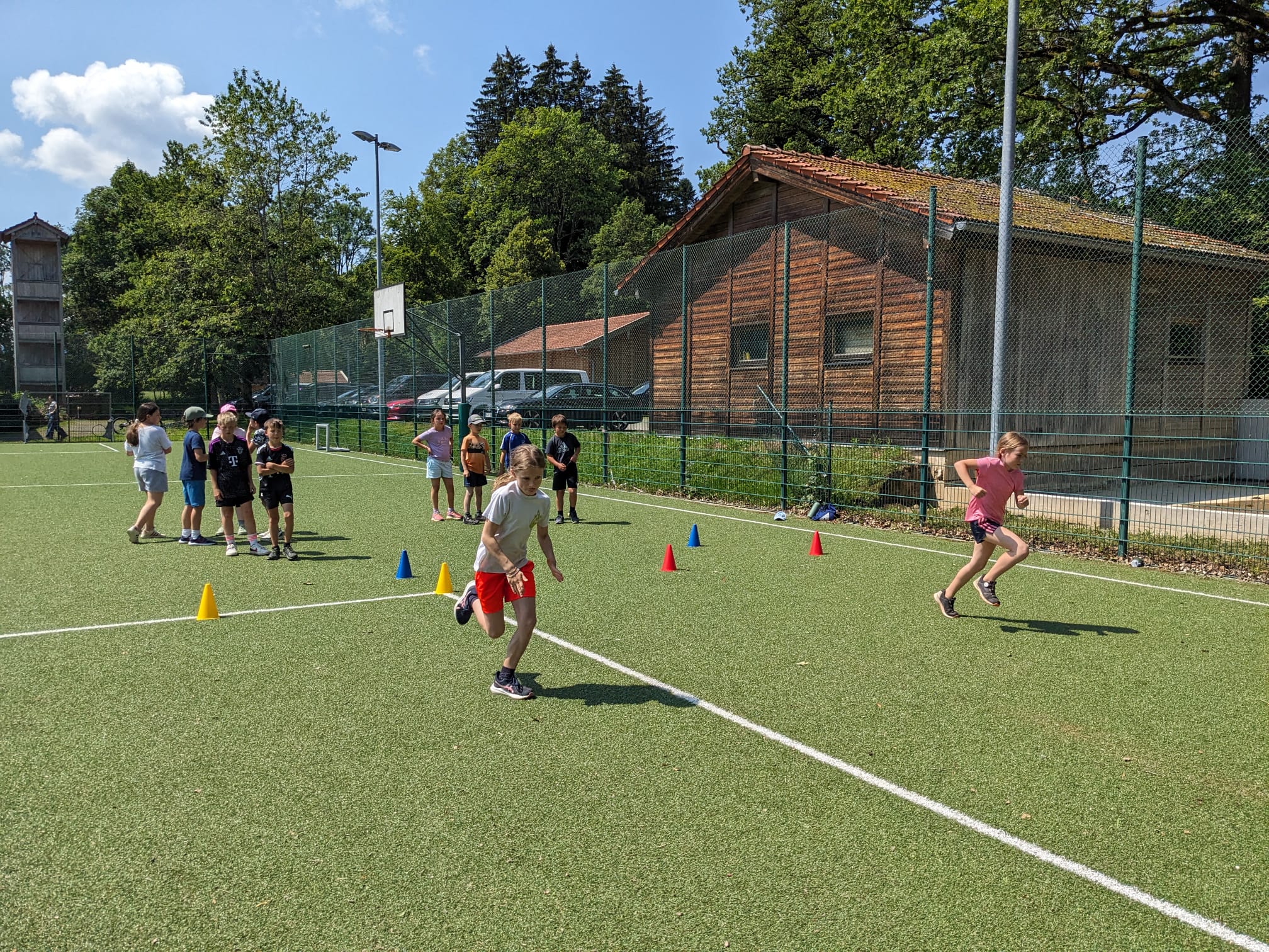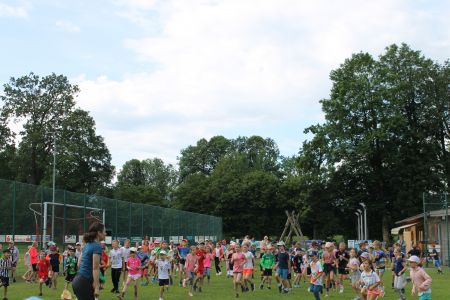 Am 28.06.2024 zeigten die Kinder der Grundschulen Warngau und Wall ihr sportliches Können am Waller Fußballplatz beim alljährlichen Sportfest. Bei herrlichen Wetter erfolgte zunächst ein gemeinsames Warm-Up mit Frau Birnbeck. Anschließend durchliefen die Athleten klassenweise unterschiedliche Stationen. Sie gaben beim Weitsprung, Wasserlauf, Dauerlauf, Sprint, Hockey, Weitwurf, Kegeln und Schwungtuch ihr Bestes. Zwischendurch durfte natürlich eine kleine Stärkung am Obststand des Elternbeirates nicht fehlen. Besonderer Dank gilt den Eltern, die tatkräftig an allen Stationen mitgeholfen haben sowie dem Elternbeirat für die Verpflegung!