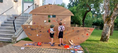 Das diesjährige Sommerfest der Grundschule Wall stand heuer unter dem Motto „Alles wird gut“. So startete es musikalisch nach den Begrüßungsworten der Elternbeiratsvorsitzenden Frau Ritter mit dem Schulchor, der uns farbenfroh ein Arche-Noah-Lied präsentierte. Zudem schmückte eine Arche-Noah aus Karton den Schulhof, auf der sich die Kinder künstlerisch verwirklichen konnten. Auch die ersten und zweiten Klassen trugen ein Mitmachlied vor und forderten die Kinder zur Bewegung auf.