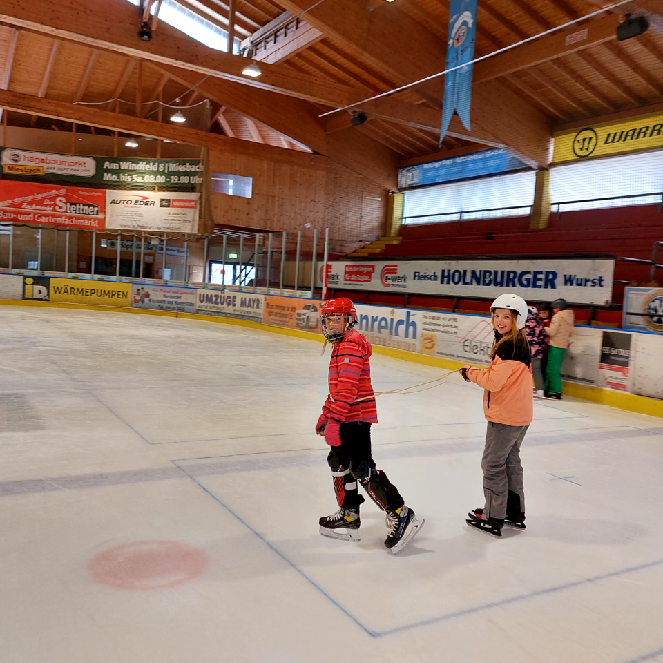 Endlich ist er wieder da, der Winter! Welch ein Glück, unsere Dritt- und Viertklässler/innen durften heuer wieder ihre Eislaufkünste vertiefen, indem wir dreimal ins „Miahelfnzam- Stadion“ nach Miesbach fuhren und dort unseren Sportunterricht durchführten.