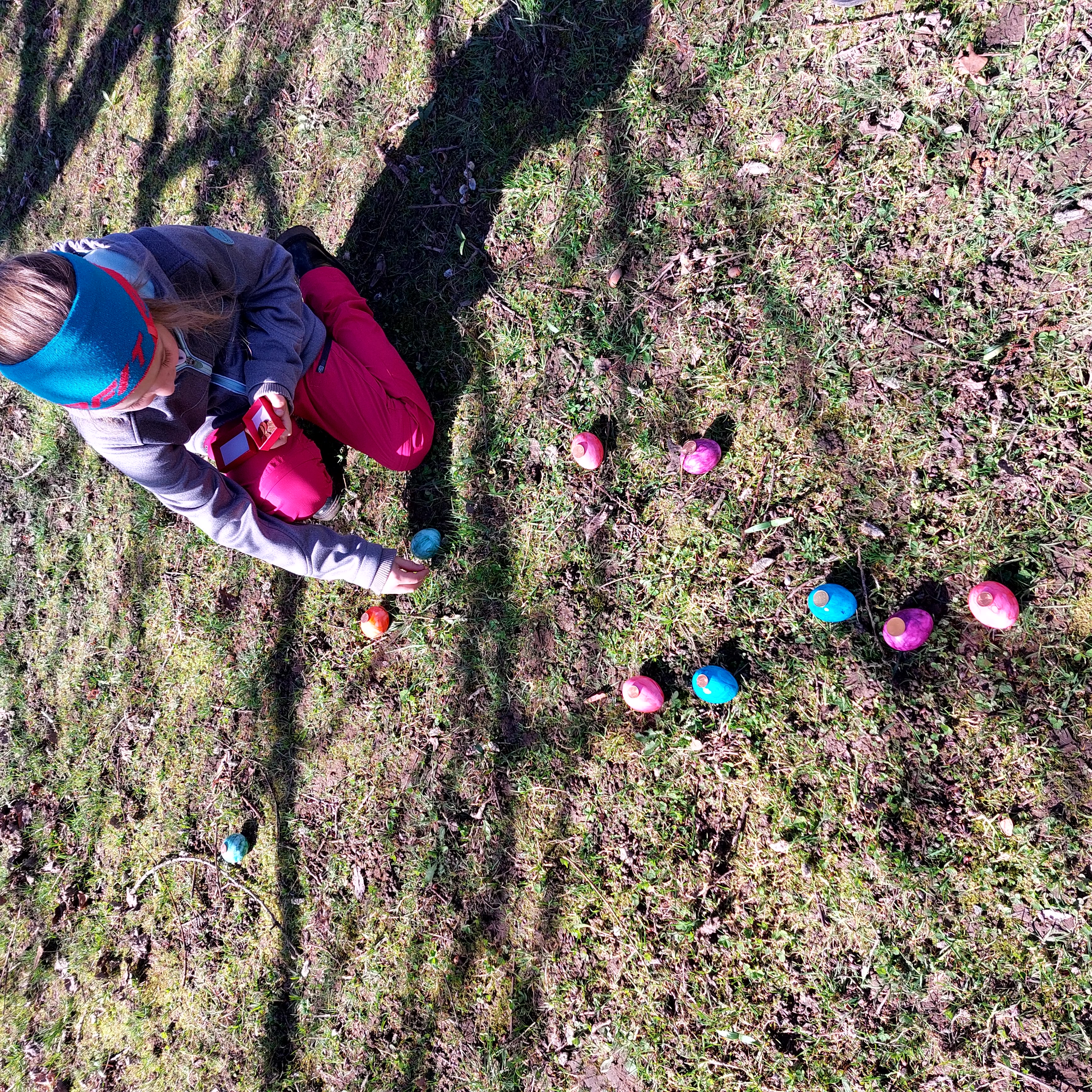 Zudem durfte jedes Kind Schokoeier und andere kleine Süßigkeiten suchen, welche zum Schluss selbstverständlich gerecht aufgeteilt wurden. Beim Oarscheim waren v.a. die älteren Kinder gefragt, die den jüngeren halfen und ihnen das Spiel erklärten.