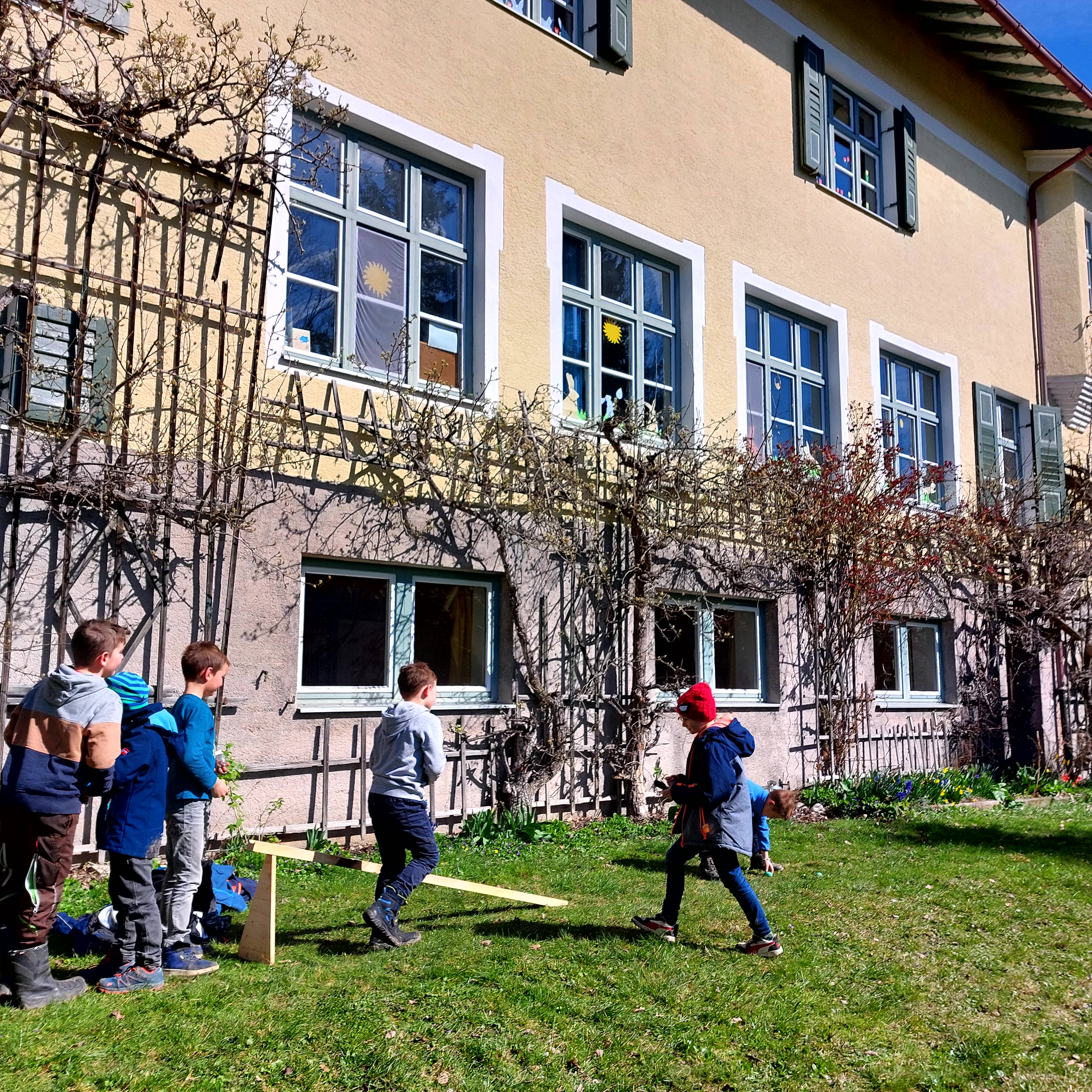 Traditionell fand am letzten Schultag vor den Osterferien wieder die Ostereiersuche im Schulgarten statt, damit sich Groß und Klein anschließend beim „Oarscheim“ richtig austoben konnten.