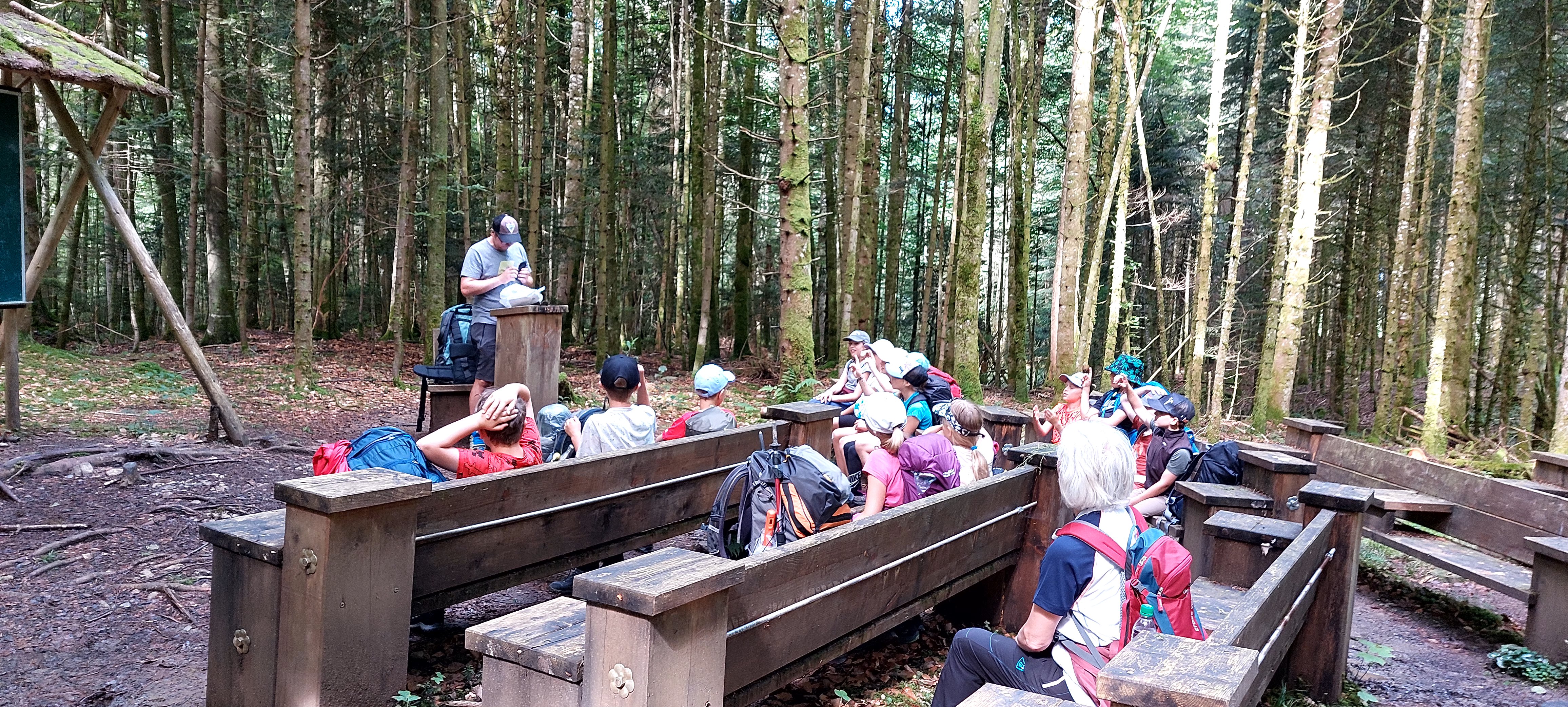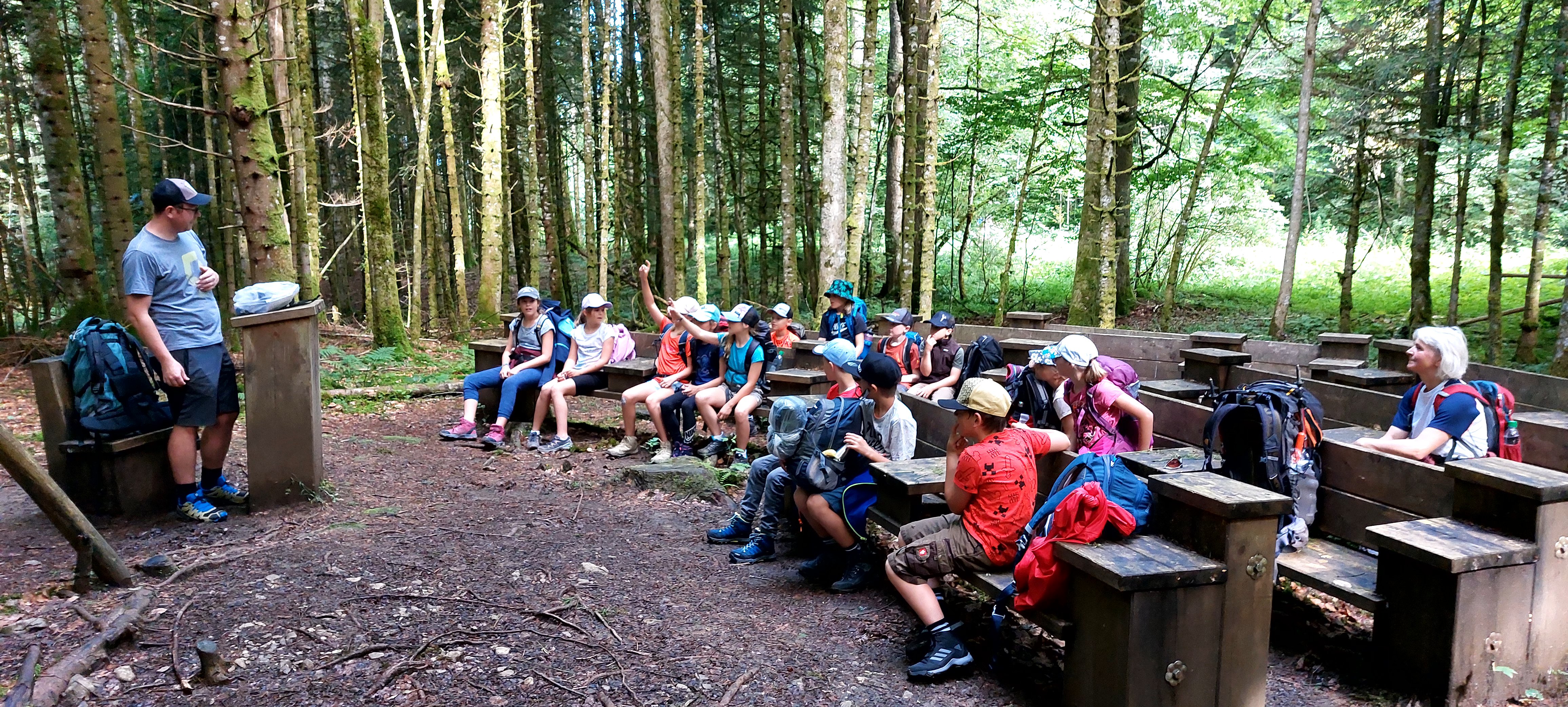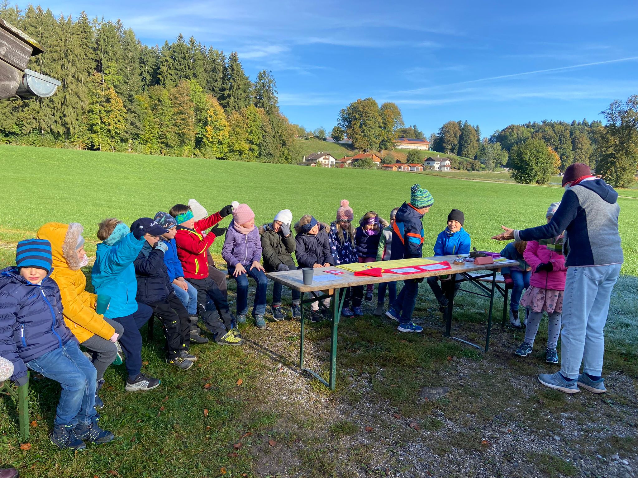 Wie könnte der Schulstart nach den Herbstferien besser beginnen wie mit einem Unterrichtsgang in den Wald. Bei schönem Herbstwetter begleitete uns der Förster Herr Feist vom Forstrevier Miesbach in den Wald. Dort durften die Dritt- und Viertklässler/innen mit allen Sinnen den Wald erfahren und ihre offenen Fragen an den Fachmann richten, nachdem wir uns in den letzten Wochen mit dem Thema „Wald“ intensiv beschäftigt haben. Wie versteckt ein Eichhörnchen seine Nüsse? Wie erkenne ich das Alter einer Fichte? Was ist der Unterschied zwischen einem Waldkauz und einer Waldohreule? Die Antwort auf diese Fragen und vieles mehr brachte Herr Feist den Kindern spielerisch und anschaulich bei. Die Zeit verging beim Tierratespiel „Wer bin ich“ oder beim „Waldgegenstände- Memory“ wie im Flug und bereitete den Kindern große Freude.
