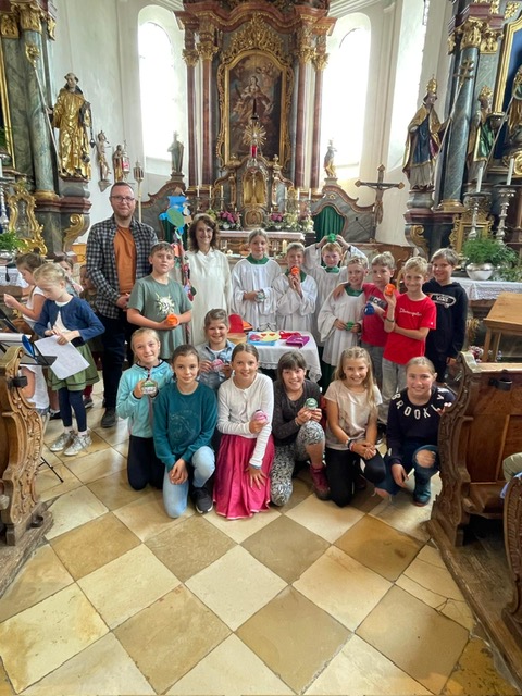Getreu dem Motto "eine Reise endet nie", versammelten sich alle Grundschülerinnen und Grundschüler sowie Kindergartenkinder am Mittwoch vor den Sommerferien in unserer Pfarrkirche St. Margareth zum alljährlichen Abschlussgottesdienst. Hierfür hat sich unsere Religionslehrerin Frau Teufele erneut richtig viele Gedanken gemacht und somit zusammen mit Frau Kainz (Gemeindereferentin), die den Gottesdienst abhielt, für eine festliche Abschlussstimmung gesorgt. Gebührend verabschiedet wurden unsere Vierties, welche neben dem Segen, den die künftigen Ersties ebenso erhielten, auch einen kleinen Rucksack mit vielen nützlichen Dingen für ihre weitere (Schul-)Reise bekamen. Ohnehin war die Beteiligung aller Kinder einmal mehr ungebrochen, denn im Gottesdienst kamen Viele zu Wort und bedankten sich mithilfe einiger Gegenstände aus dem dem Rucksack von Frau Teufele für dieses wunderbare Schuljahr. Was für eine tolle Idee und nicht nur das, zum Schluss waren sich alle einig - es bleibt gar keine Zeit zum traurig sein, denn was sich in einem jeden persönlichen Rucksack befindet, stärkt für die Zukunft, für die weitere Reise, die wohl nie endet.
