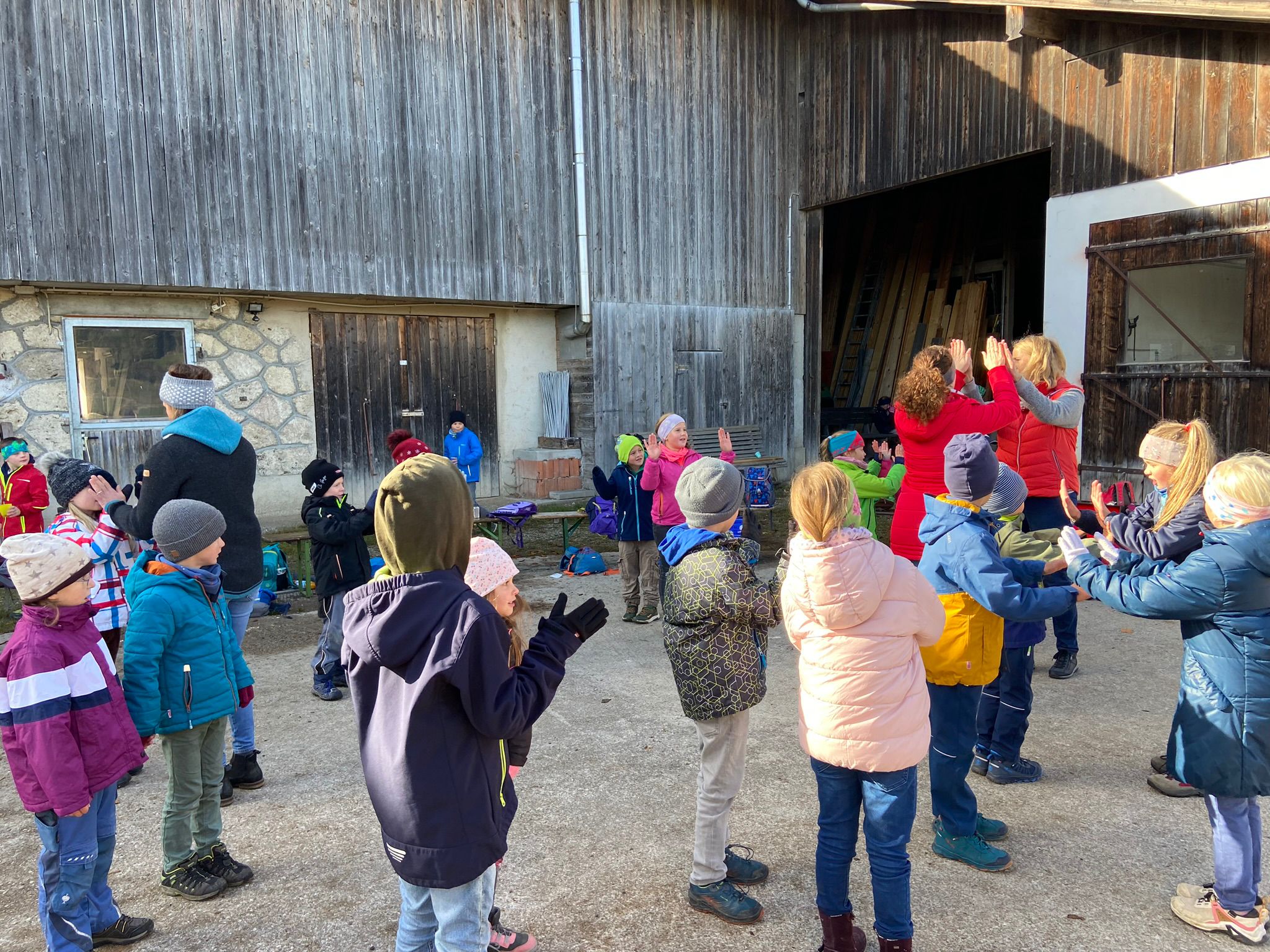 Auch in diesem Jahr veranstalteten wir am Kirtamontag wieder wie gewohnt unseren Brauchtumstag. Bei sonnig, kaltem Wetter machten sich die vier Klassen der Schule auf den Weg zum Hof der Familie Schliersmayer. Nachdem alle Kinder in Hinterweidenau eingetroffen waren, verteilten wir uns auf die verschiedenen Angebote. Frau Salchegger lud, wie schon viele Jahre, zum traditionellen Kirtatanzen. Der Elternbeirat versorgte uns mit traditionellem Kirtagebäck und Punsch. Auch der religiöse Hintergrund von Kirta wurde den Kindern an einer Station von Frau Teufele sehr anschaulich bewusst gemacht. Und das Kirtahutschn durfte natürlich auch nicht fehlen. Um 11 Uhr wurden viele Kinder direkt am Hof wieder abgeholt und nur ein kleiner Teil machte sich mit den Lehrern auf den Weg zurück zur Schule. Ein wunderschöner Kirdamontag ging viel zu schnell zu Ende.