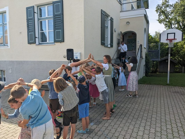 Wir sagen ein herzliches Dankeschön an die Familie Schliersmayer, die uns jedes Jahr wieder die Möglichkeit gibt, die Tradition des Kirtahutschns weiterzuführen. Auch Frau Salchegger gilt unser Dank, die es immer wieder schafft, die Kinder für das Tanzen zu begeistern. Und auch ein herzliches Dankeschön an den Elternbeirat, der uns zur Stärkung wieder mit traditionellem Kirtagebäck versorgt hat.